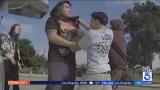 A file photo shows sprinkler spilling water on sidewalks. (Credit: KTLA) - a ban on watering of ornamental areas and medians using potable water;